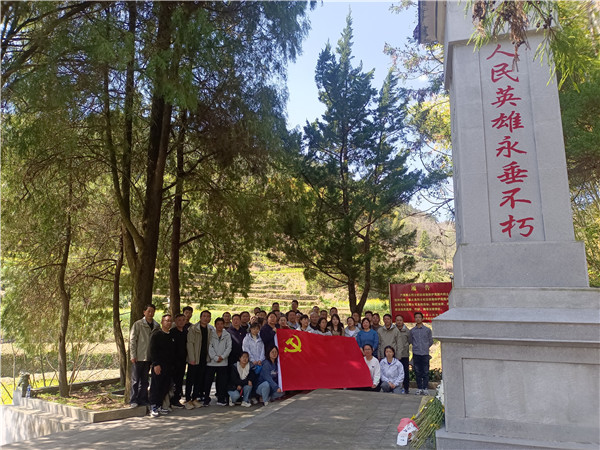下山后,大家前往霞坑镇萌坑烈士纪念碑。松柏苍翠,丰碑耸立,烈士墓前,大家肃穆静立,追思先烈丰功伟绩,缅怀英雄峥嵘岁月,在今后工作中继承和发扬革命先烈的优良作风,立足平凡岗位做好本职工作,不忘初心,砥砺前行。