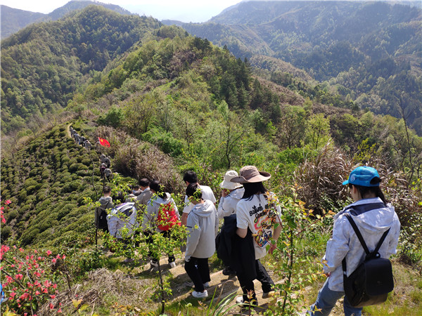 “何须名苑看春风,一路山花不负侬”。登上那郁郁葱葱的霞坑十八拐山顶,火红火红的映山红在蓝天白云下摇曳生姿,山川林海云蒸霞蔚,美不胜收,让大家忘却身体的疲惫,驻足合影留念。此次登顶霞坑十八拐途中,大家结伴而行,互相帮助,充分展现了徽投员工凝心聚力、勇攀高峰的良好精神风貌。
