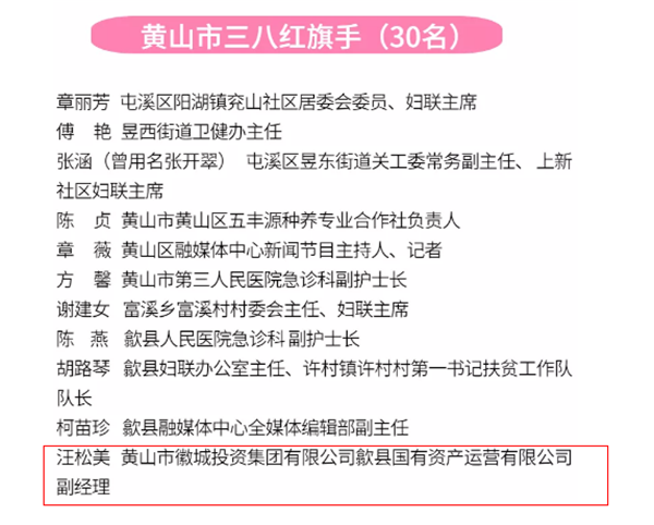 2020年度,徽投集团在县委、县政府的坚强领导下,充分发挥妇女组织积极作用,投身抗疫、抗洪、抗贫,巾帼不让须眉,涌现出一批市县三八红旗手。