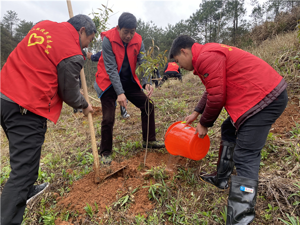 在植树现场,大家团结协作,三人一组、五人一队,在歙西林场工作人员的悉心指导下,挥锹铲土、挖坑植苗、培土压实、灌溉浇水,处处呈现一派热火朝天的劳动景象。经过大家的共同努力,1000余株枫香、檫树等共建友谊之树错落有致,迎风挺立,为春光里再添生机活力。