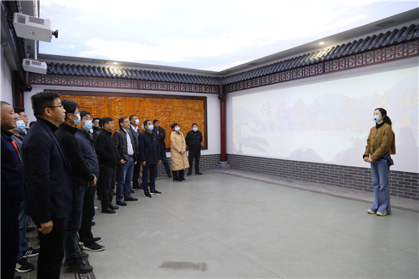 黄山市反腐倡廉警示教育展示厅依据“徽”字造型分为“山、水、人、文”四个组成部分。山,责任重于山,使命大于天;水,正本清源,激浊扬清;人,非常之人,高山景行;文,文随世运,徽州清风。