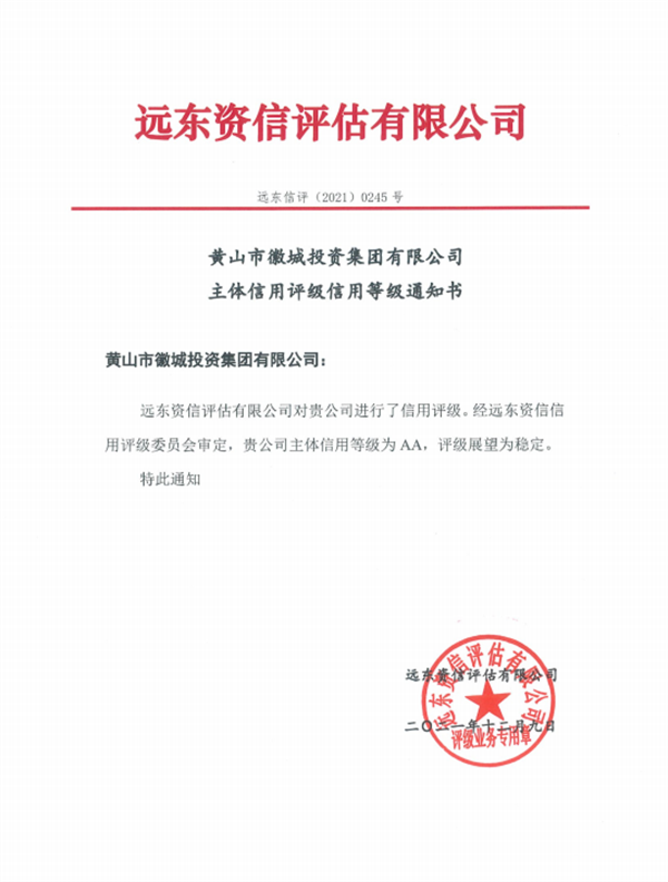 12月9日,乐鱼官方端网站登录入口-乐鱼(中国) 公司成功获评2A信用等级,系我市区县唯一获评2A信用等级国有企业,将为歙县加快完善基础设施,加快产业招商和功能培育,打造高气质现代化文化旅游名城建设大平台提供坚实的融资保障。截至目前,集团总资产达135亿元,所有者权益73.9亿元。