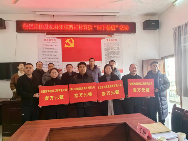 座谈会结束后,举行了捐赠仪式,徽投集团向西村村捐赠10万元乡村振兴帮扶资金,并带动3家建筑公司捐赠3万元支持村集体经济发展。此外,还走访慰问了3名困难群众,为他们送去新年的关怀与温暖。
