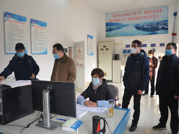 2月4日下午,副县长汪洪涛、住建局局长黄中到自来水公司督查疫情防控期间供水安全工作。