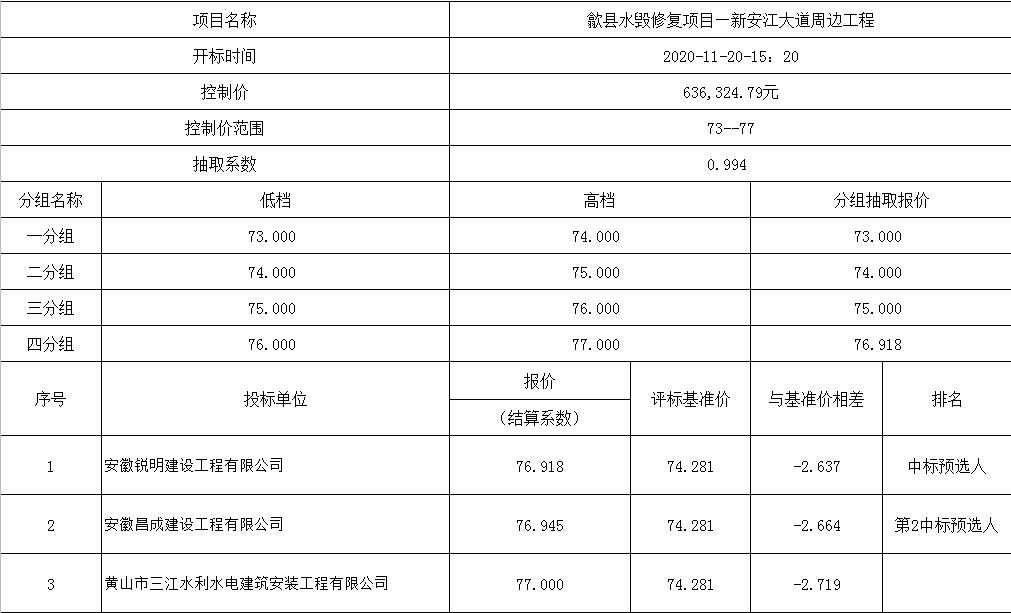 歙县水毁修复项目—新安江大道周边工程 小型项目第一阶段比选公示