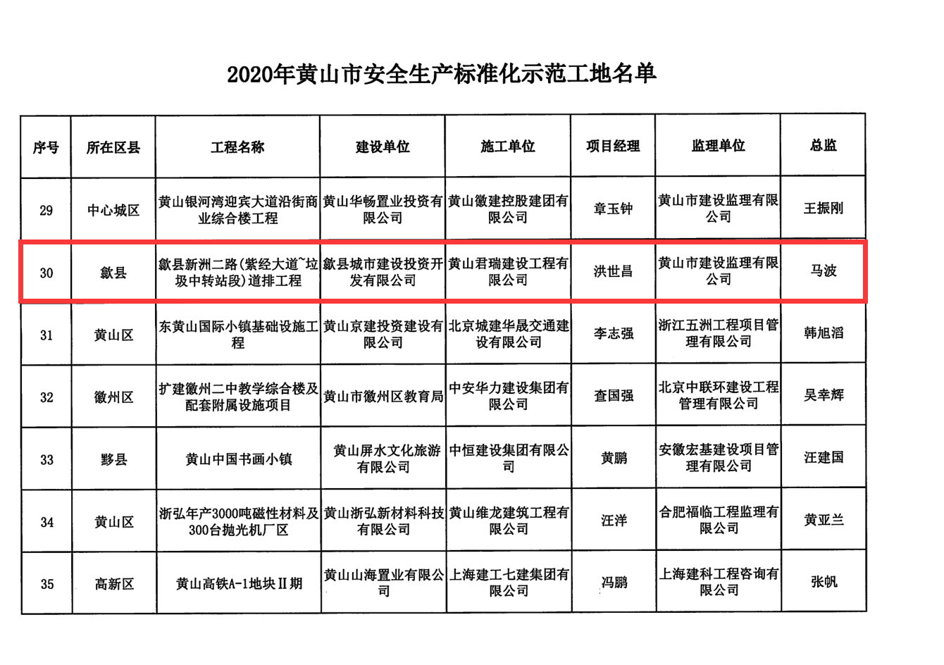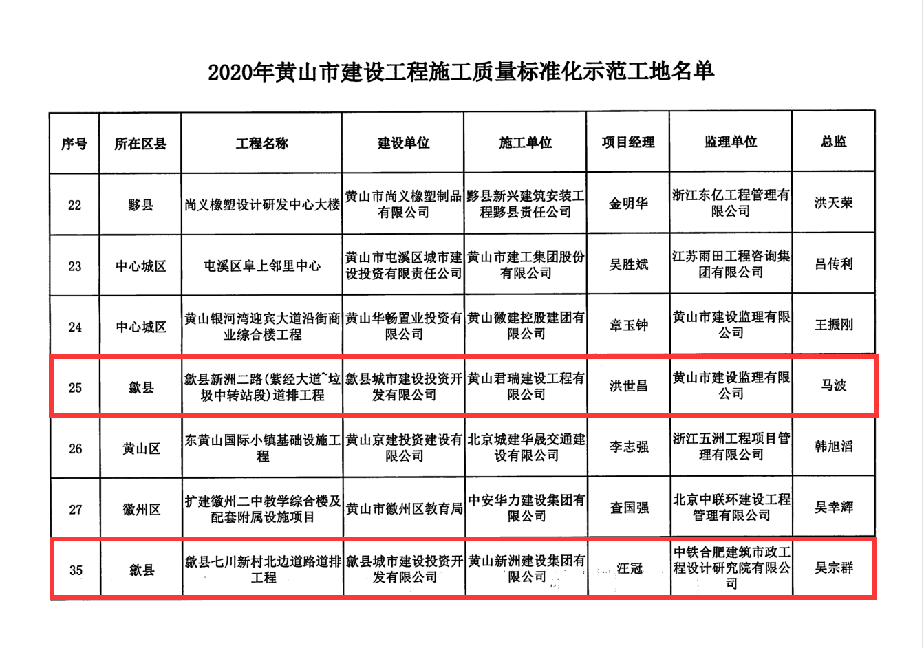 依据最新下发的《关于2020年黄山市建设工程施工质量标准化示范工程和黄山市安全生产标准示范工地名单的公示》,由我公司负责建设的歙县新洲二路(紫经大道-垃圾中转站段)道排工程、歙县七川新村北边道路道排工程两项目获评为黄山市“2020年度黄山市建设工程施工质量标准化示范工程项目”称号;同时歙县新洲二路(紫经大道-垃圾中转站段)道排工程还获评为2020年黄山市安全生产标准化示范工地。