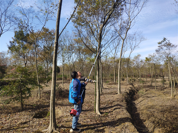 二是机械赋能提高生产效率。考虑到城区苗圃杂草丛生,土壤板结,石块较多的实际情况,利用挖机进行深耕细作,人工清理碎石,改良土壤理化性质;添置割灌机、绿篱机、高枝剪等机械进一步提高生产效率。