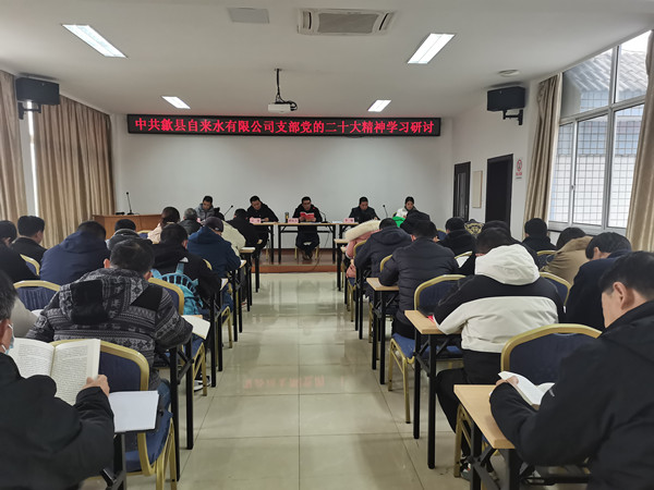 12月13日,歙县自来水有限公司党支部召开支部党员大会暨党的二十大精神学习研讨会,公司党员、发展对象、入党积极分子等38人参加了此次会议。