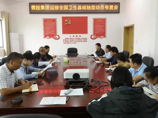 2019年10月12日上午,徽投集团召开迎接全国卫生县城抽查动员布置会,国资公司分管领导、市政公司分管领导、物业公司代表、国资公司全体员工参加会议。